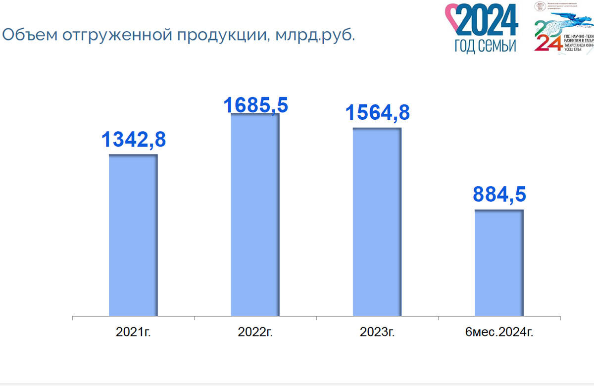 «Объем отгрузки в первом полугодии достиг 884,5 млрд рублей, что на 34% больше показателя аналогичного периода прошлого года. Здесь цифры растут. Надеемся, что до конца года объем отгруженный продукции будет стабильно расти», — отметил Нагуманов.