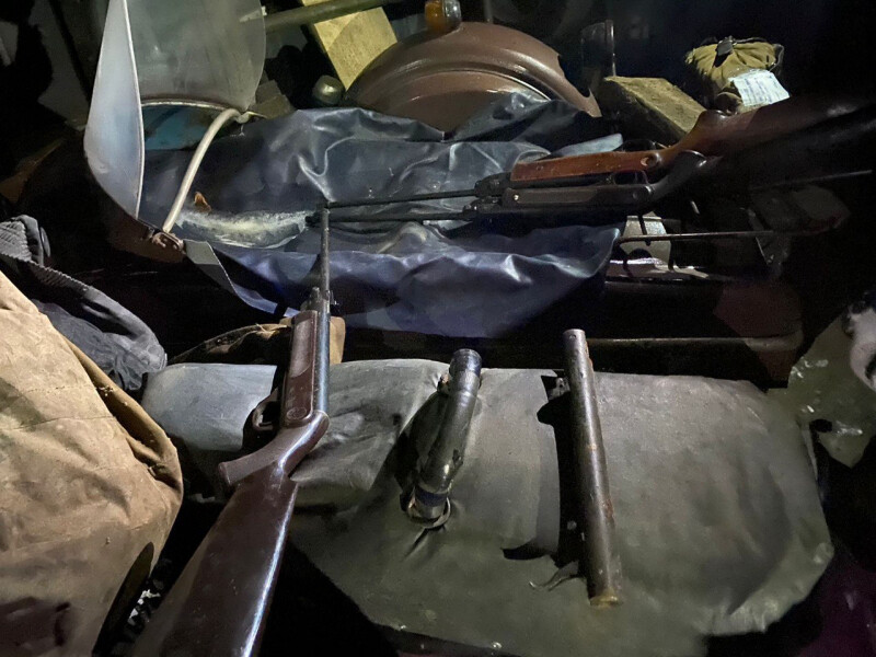 При осмотре машины в салоне мужчины нашли два чемодана, а в них – 6 банок с порохом и 352 патрона разных калибров. В гаражах мужчины были найдены пистолет, револьверы, восемь винтовок, одно охотничье ружье, а также барабаны и патроны.