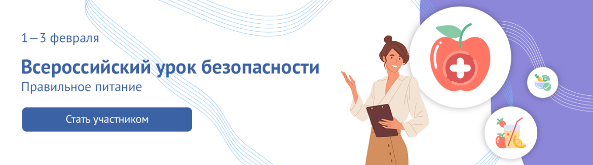 В 2021 году стартовал масштабный проект ГК «Просвещение» «Всероссийский урок безопасности». Больше 220 тысяч человек приняли участие в первых уроках о действиях в чрезвычайных ситуациях, противодействии терроризму, безопасности на дороге и в Сети. С 1 по 3 февраля начнется новый тематический модуль, посвященный правильному питанию.