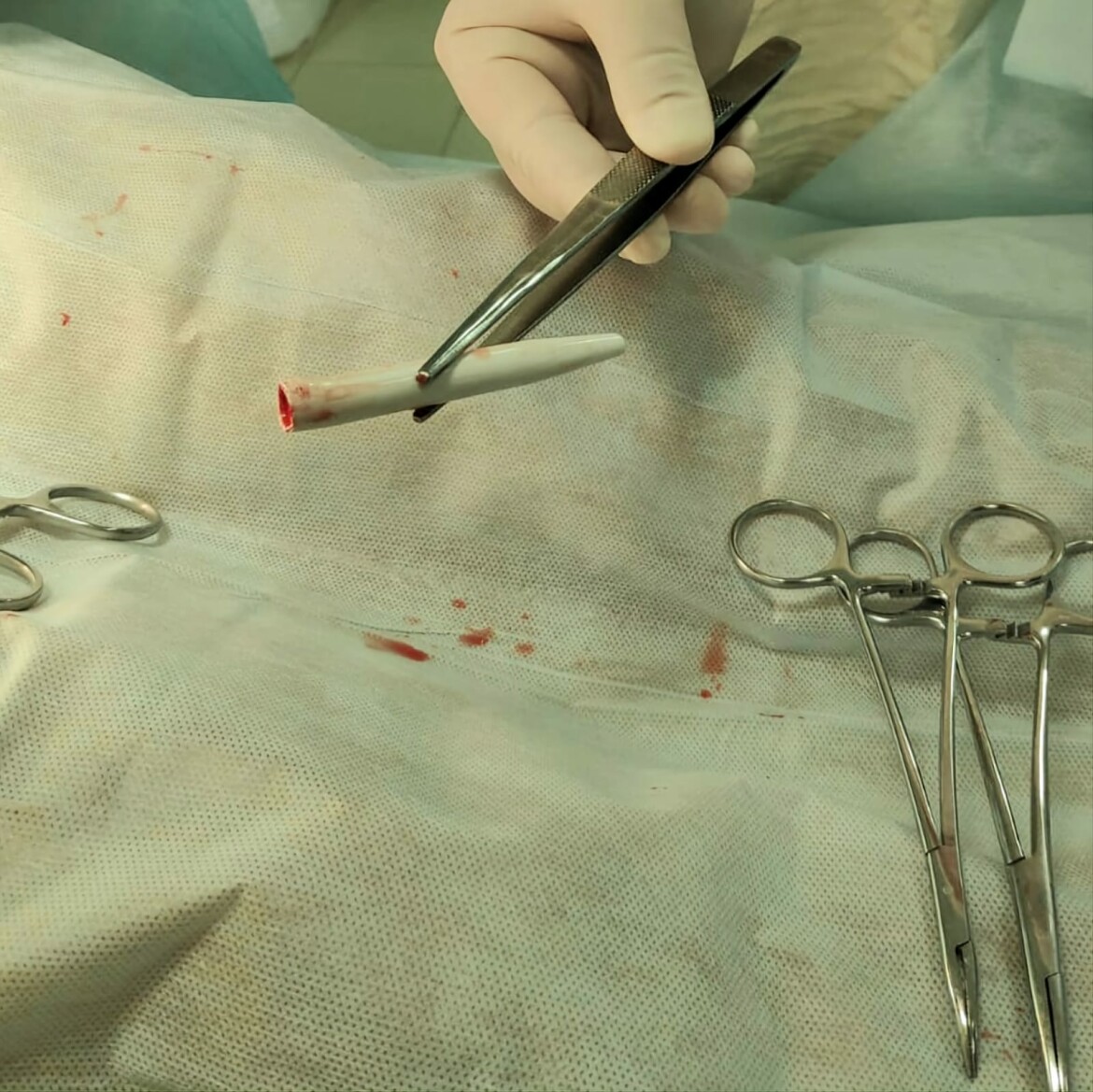 «Пациенту под спинномозговой анестезией провели операцию – рассечение наружного отверстия уретры – меатотомию. Широкая часть ручки застряла в области ладьевидной ямки. Мы рассекли скальпелем ткани уретры и извлекли две части ручки, затем ушили края раны и наложили повязку», – рассказал главный хирург больницы, врач-уролог Рустам Абдурахманов.