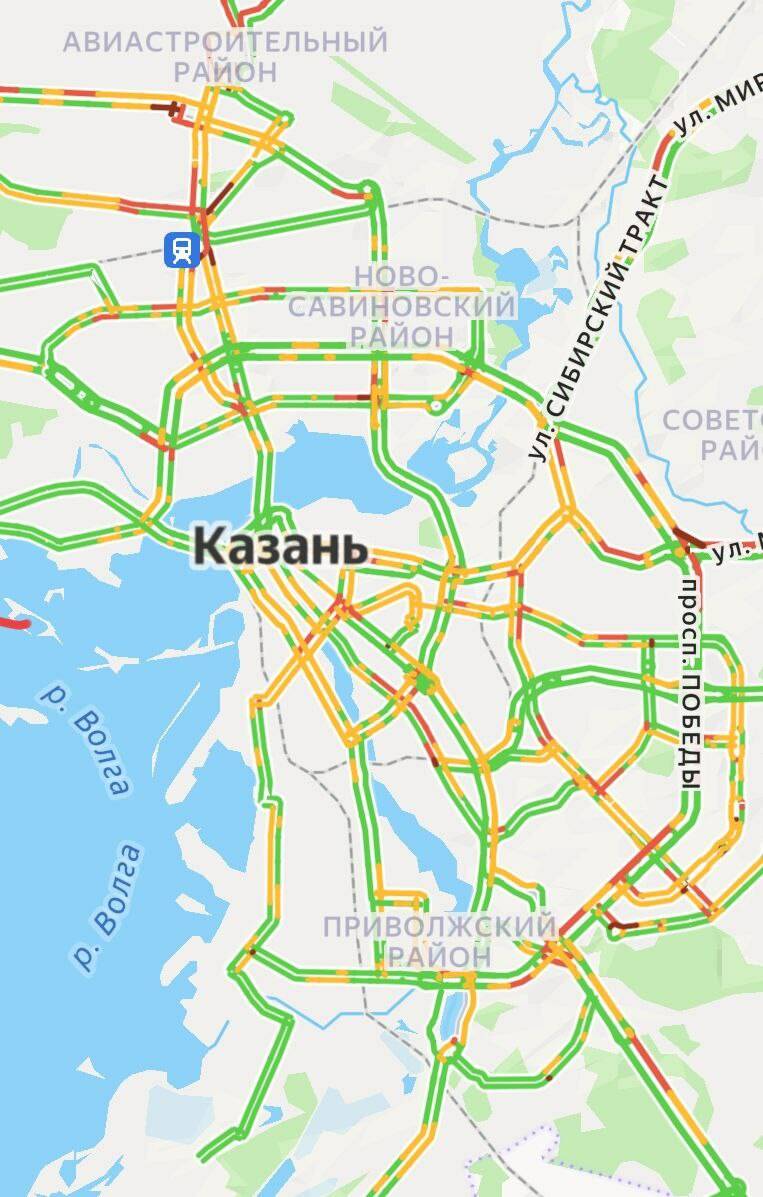 Утром среды в Казани образовались семибалльные пробки, следует из данных сервиса Яндекс Карты.