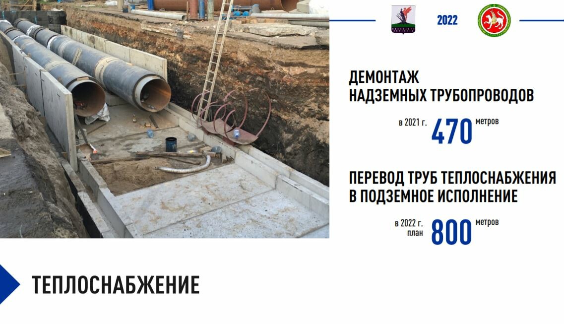 В 2022-м планируется выполнить работу по переводу около 800 метров труб теплоснабжения в подземное исполнение в рамках инвестиционного соглашения с ПТС.