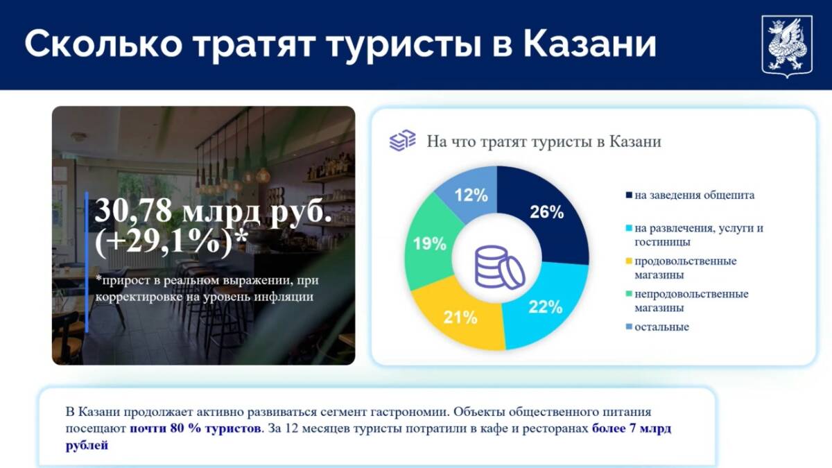 В 2024 году туристы потратили в Казани почти 31 млрд рублей