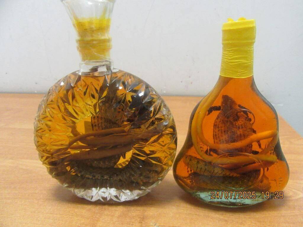 В связи с тем, что в обнаруженном экзотическом напитке могут находиться рептилии, включенные в перечень видов животных и растений, подпадающих под действие Конвенции о международной торговле видами дикой фауны и флоры, сотрудники таможенного поста направили их на экспертизу.