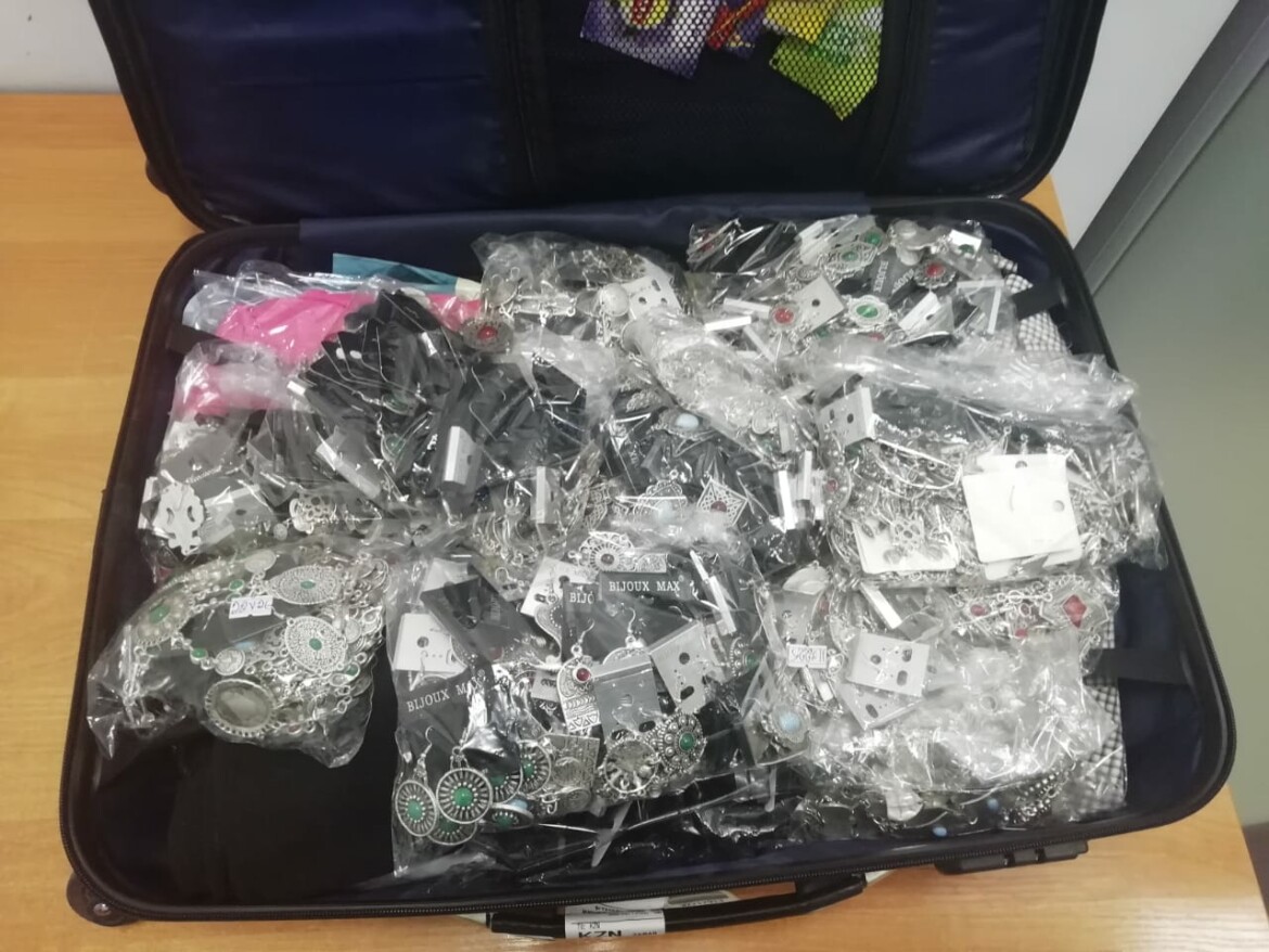 Чемодан женщины был набит подвесками для волос, браслетами и серьгами из металла. Большинство изделий содержали различные камни.