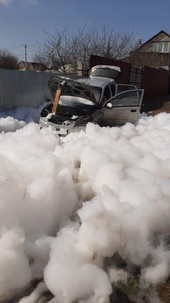 На месте было установлено, что огонь вспыхнул в моторном отсеке авто. Чтобы потушить пожар, огнеборцы залили легковушку пеной.
