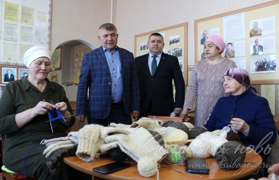 Перед началом схода глава района побывал в музее писателя и журналиста Газиза Кашапова, где собираются жительницы села и вяжут носки для призванных по частичной мобилизации.