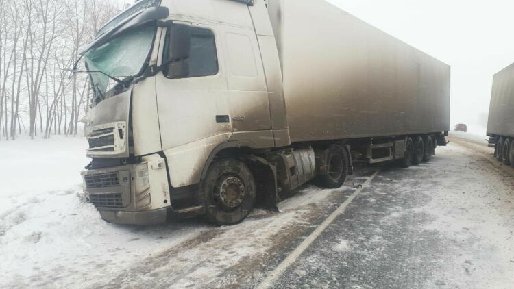 На трассе М7 возле совхоза имени Кирова большегруз «Вольво» с номерами Смоленской области врезался сзади в фуру с башкирскими номерами с прицепом-цистерной.