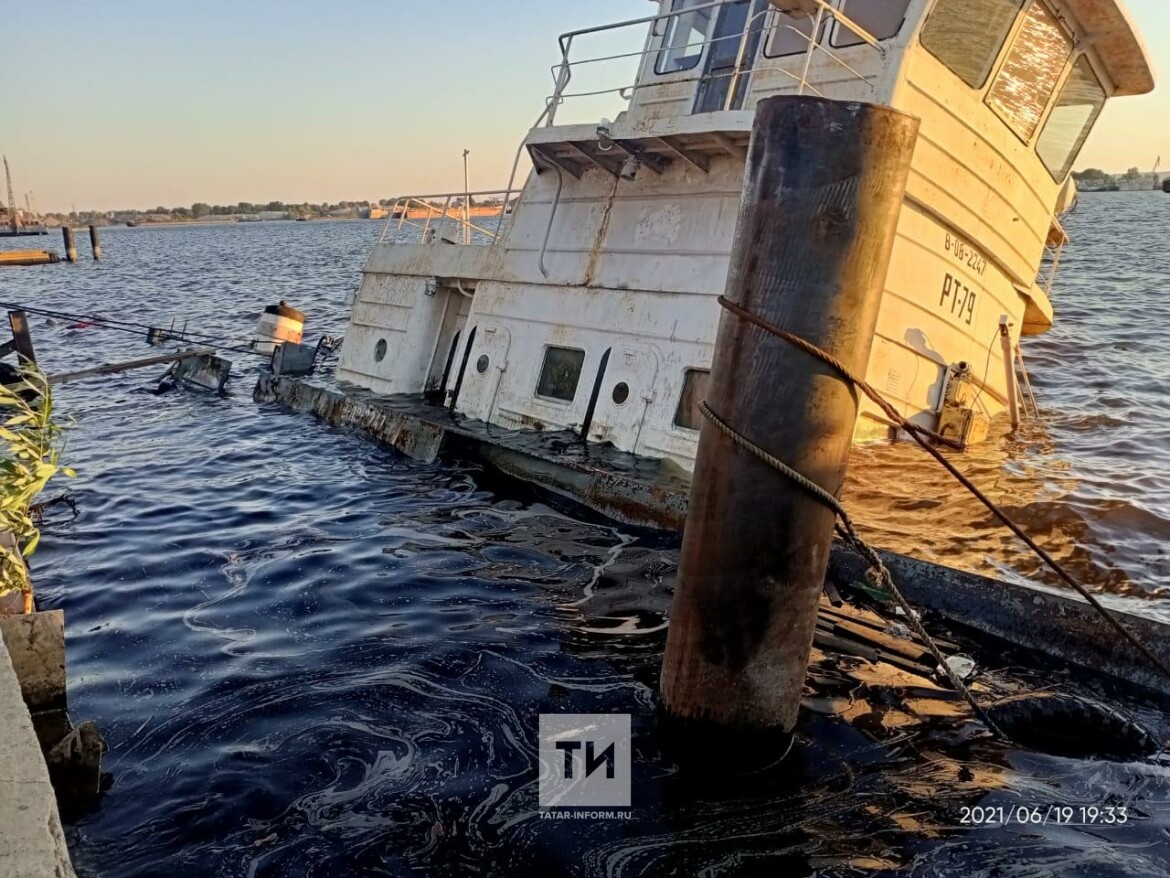 В акватории Волги в Казани затонуло судно, топливо вылилось в воду