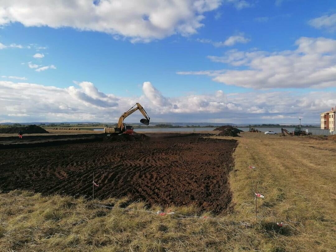 Глава муниципалитета поделился фотографиями, на которых видно, что площадка под объект выровнена, на ней работает спецтехника.