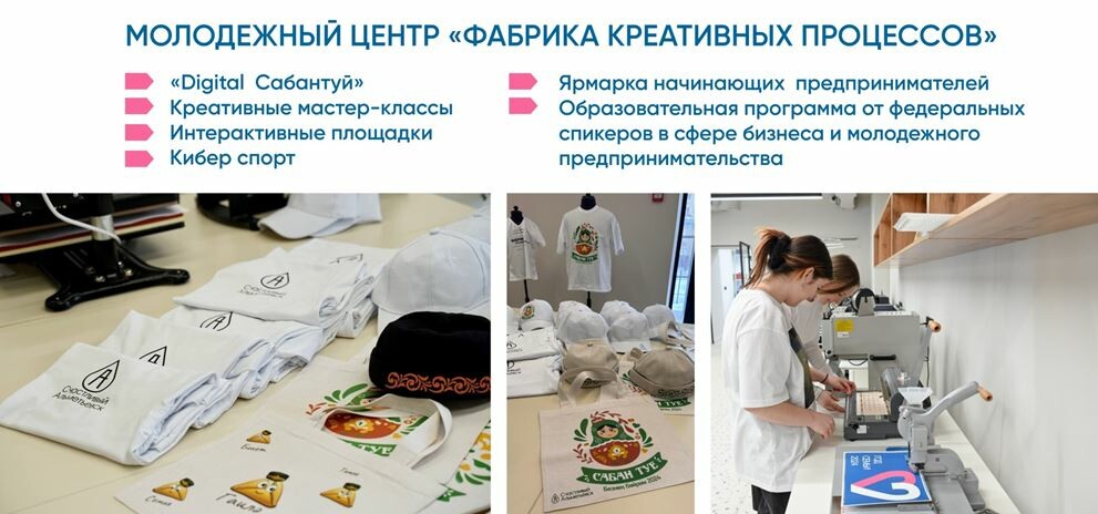 Так, на площади Молодежного центра «Фабрика креативных процессов» пройдет «Digital Сабантуй» в тематике цифрового искусства и молодежного предпринимательства.