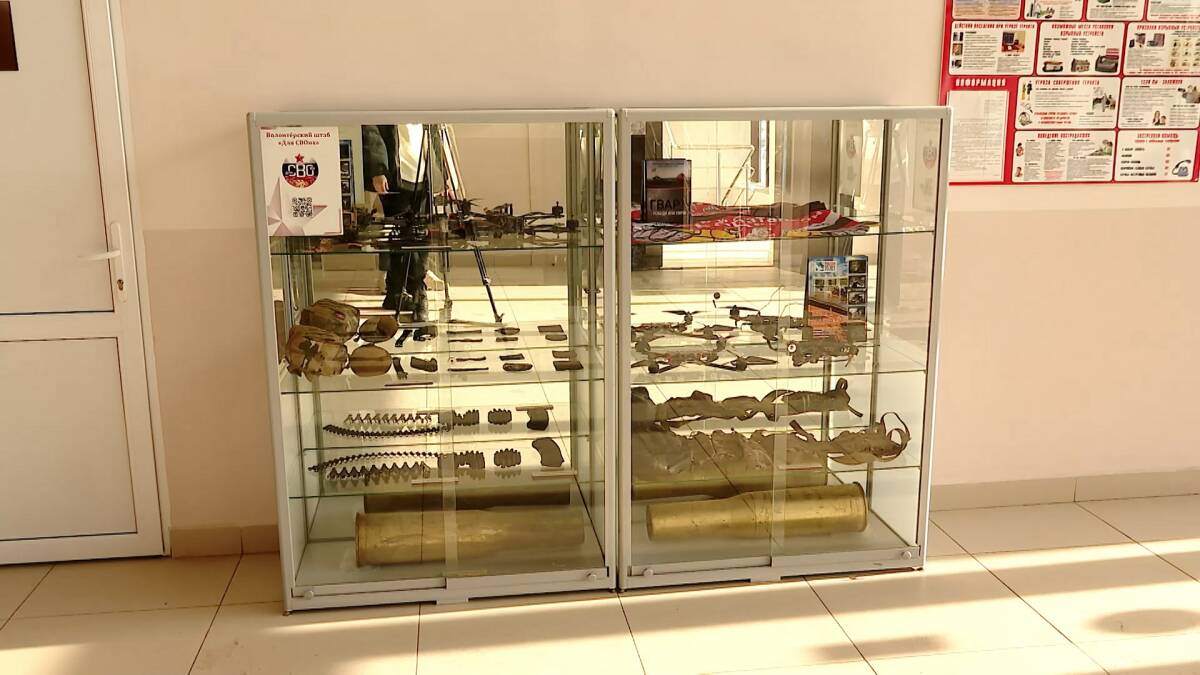 Мадина Варфоламеева регулярно выезжает с гуманитарными миссиями «за ленточку», поддерживает постоянную связь с бойцами. Именно они помогли в создании небольшого музея и передали трофеи и шевроны. Среди представленных предметов есть по-настоящему уникальные.