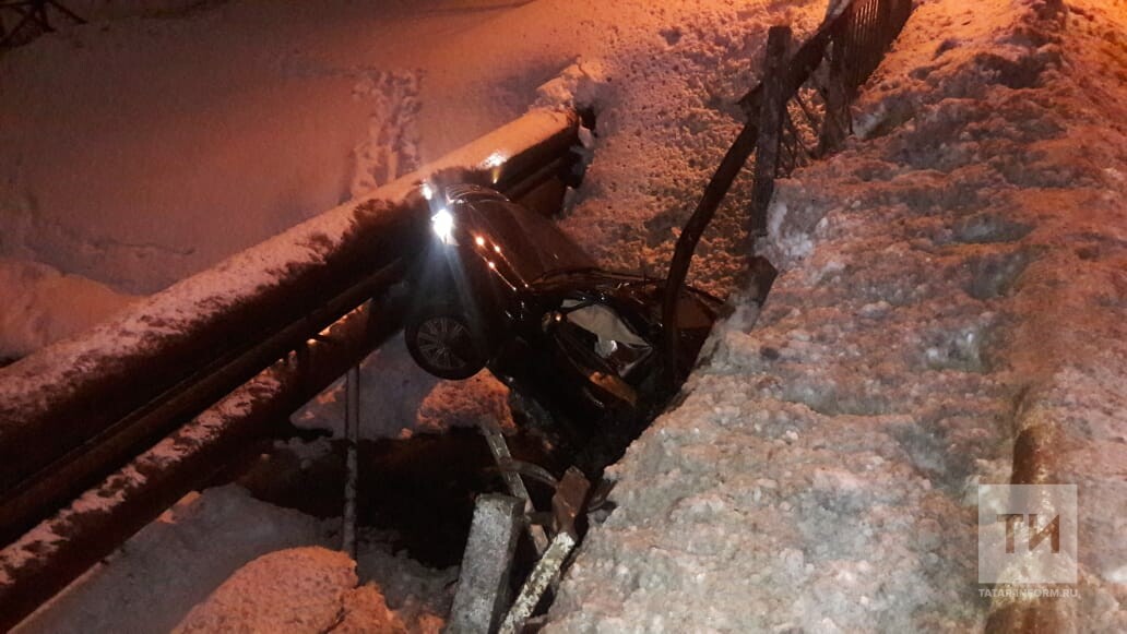 Как рассказали ИА «Татар-информ» очевидцы, водитель внедорожника Lexus не справился с управлением и вылетел с дороги под мост. Иномарка зацепилась передней частью за трубопровод и буквально повисла над землей.