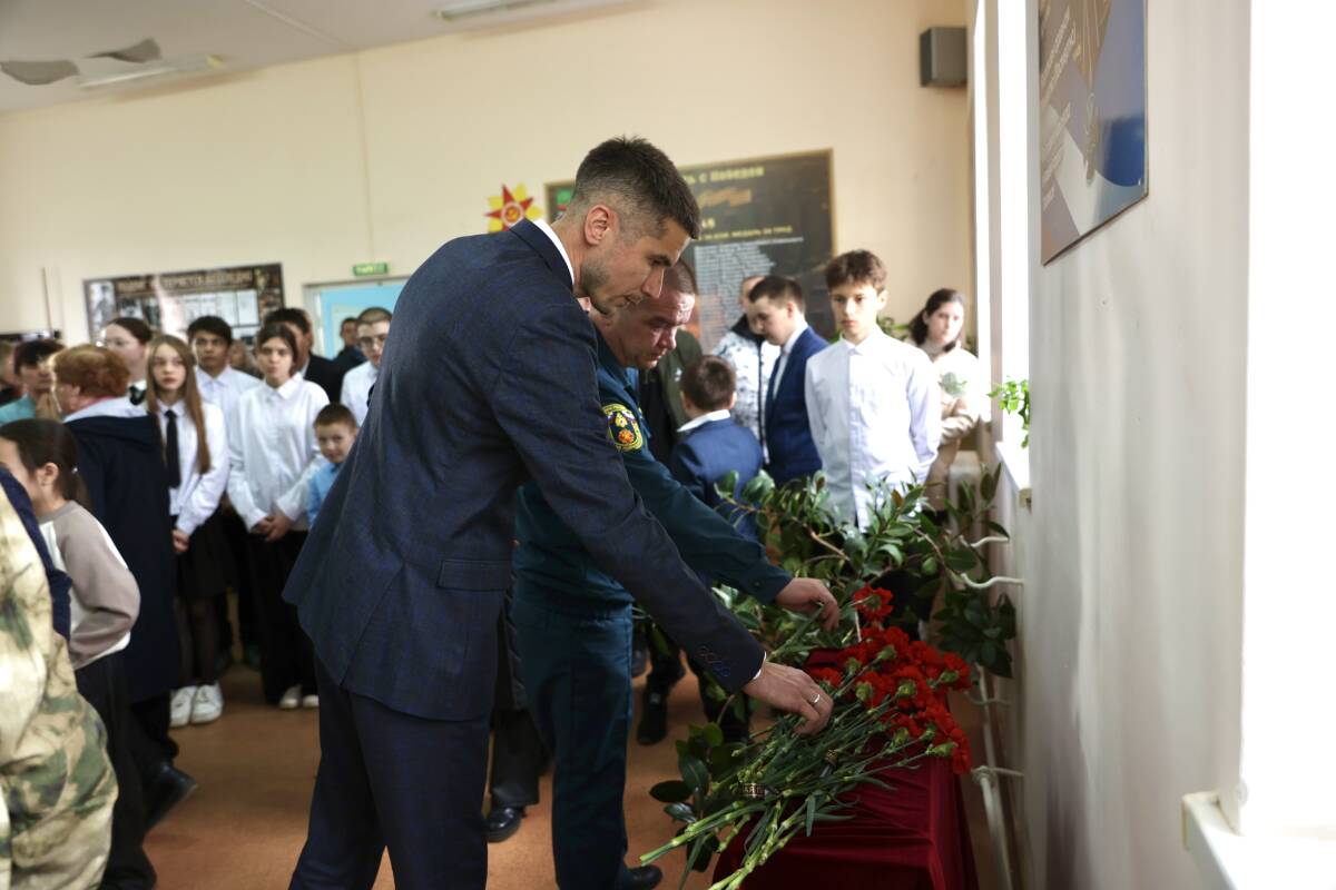 Присутствующие возложили цветы к мемориальной доске и почтили память героя минутой молчания.