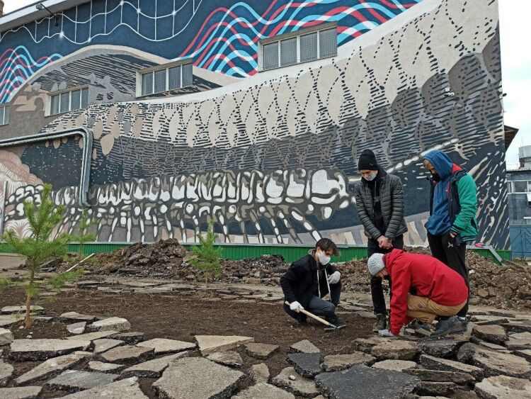 «В этом году мы активно сотрудничаем с Игорем Сафиуллиным, ландшафтным инженером, и интегрируем в наши художественные проекты фрагменты дикой природы. Очень важно донести до общества идею о том, что нужно возвращать природе то, что у нее забрали. В августе мы ездили в экспедицию по Альметьевскому району, собирали семена, и сейчас ученики биологических классов сажают их в грунт на этой индустриальной площадке», — пояснила Еж.