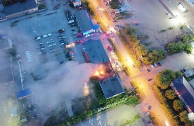 Сегодня в соцсетях появились фото и видеозаписи, на которых был запечатлен пожар возле авторынка «Агат» в Альметьевске.