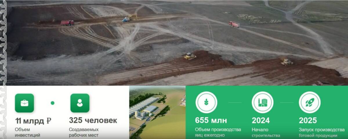 Производительность фабрики планируется на уровне 655 млн яиц ежегодно. Для сравнения — всего в 2024 году в Татарстане планируют произвести 1,5 млрд яиц.