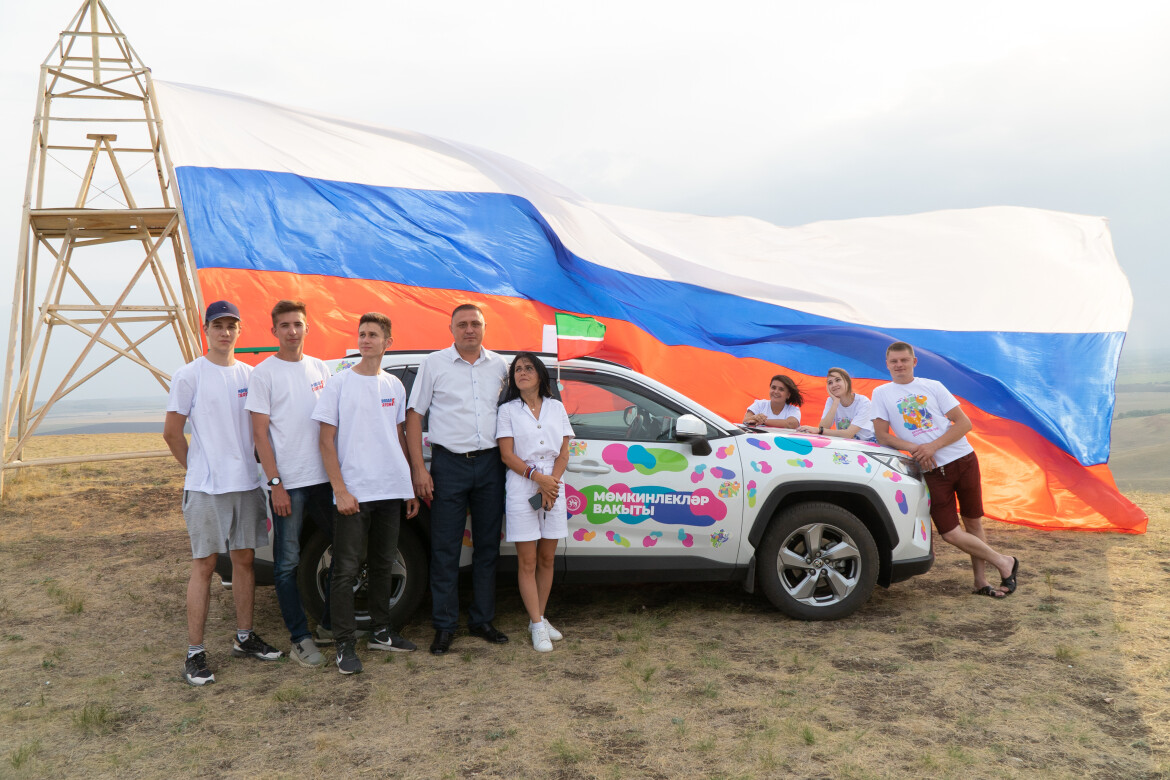 «Традиционно в этот день наша общественная организация „Молодая гвардия“ организует по всей республике акции по раздаче лент с изображением российского триколора — мы не только дарим жителям и гостям Татарстана символические ленты, но и рассказываем историю российского флага. В этом году возникла масштабная идея: помимо традиционных мероприятий, мы провели формат экокемпинга на горе Чатыр-тау, где установили большой флаг размером 20 на 30 метров. Для жителей самого города нам тоже захотелось создать атмосферу праздника, поэтому родилась идея отобразить в нем символ Азнакаевского района и всей республики — гору Чатыр-тау», — поделился собеседник агентства.