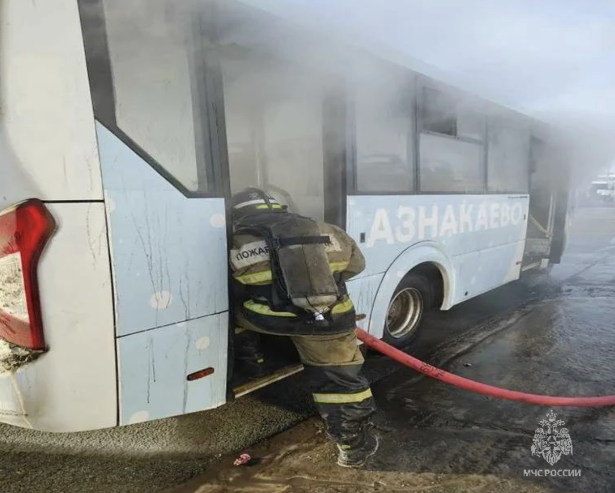 В Азнакаево загорелся автобус с людьми, никто не пострадал