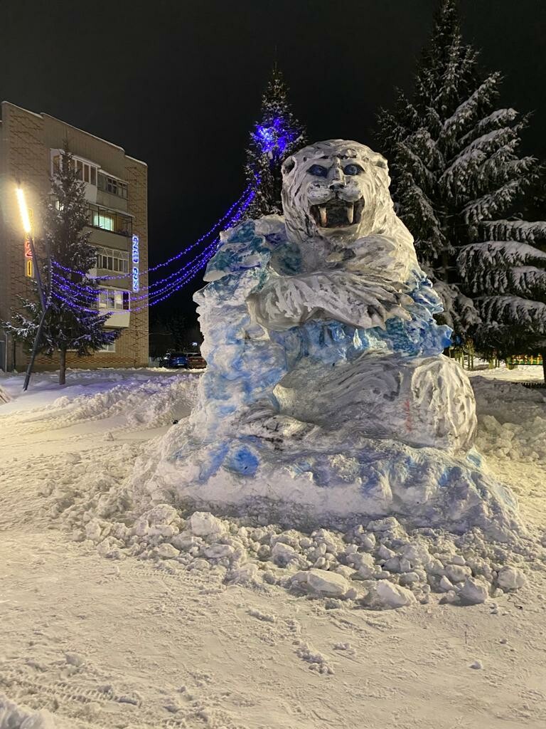 В Бавлах появилась одна из самых крупных снежных фигур барса в Татарстане