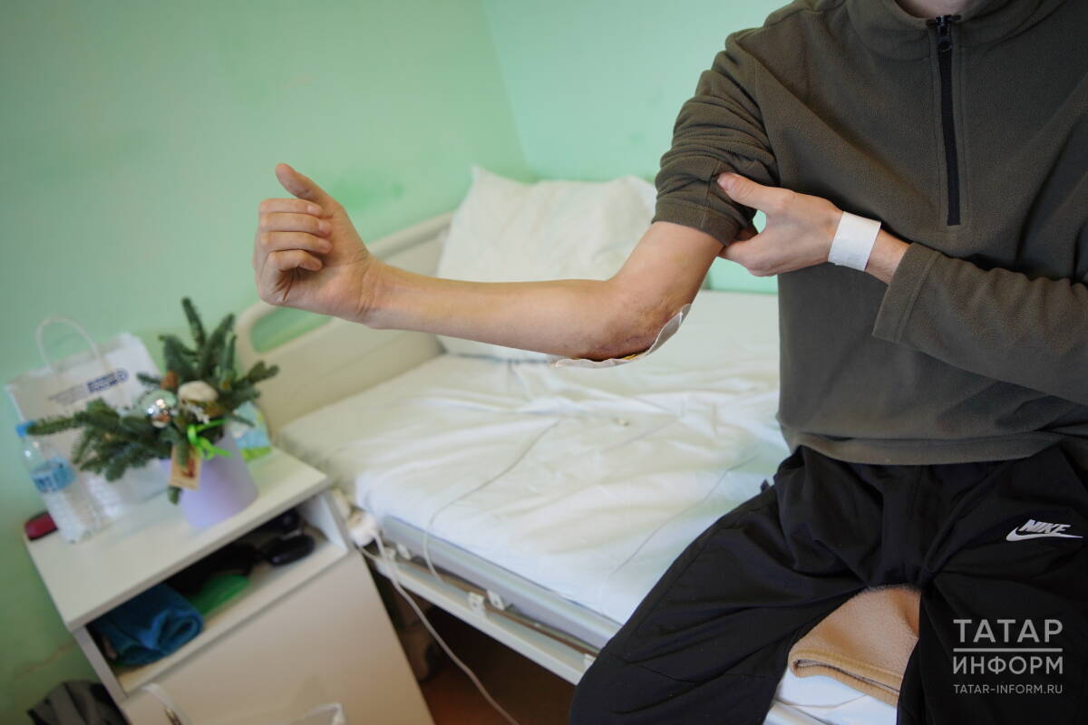 «Пациент до нас побывал в нескольких российских госпиталях. Рукой он не мог двигать от слова совсем. Он не мог сам себя обслуживать и даже делать банальные вещи: почистить зубы, причесаться. Нашей задачей было вернуть ему возможность заниматься привычными бытовыми делами», – рассказал заведующий отделением травматологии №3 военного госпиталя при РКБ Ильдар Гильмутдинов.