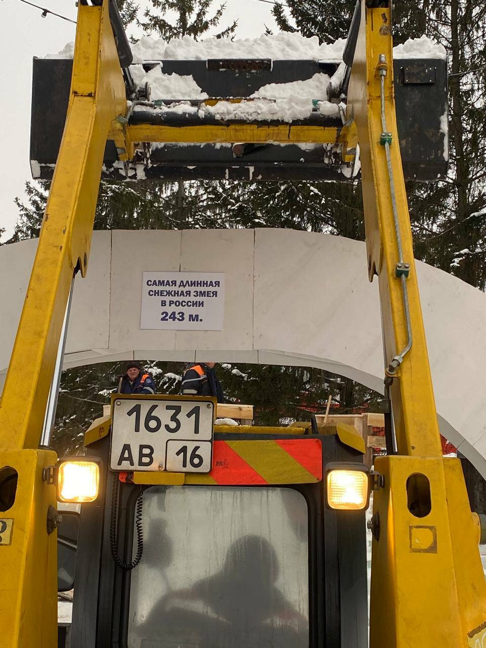 Звания самой длинной снежной змеи в России может удостоиться фигура из Бугульмы. Там слепили из снега пресмыкающееся длиной ровно 243 метра. Именно столько лет исполнилось в этом году Бугульме — старинному городу на юго-востоке Республики Татарстан.