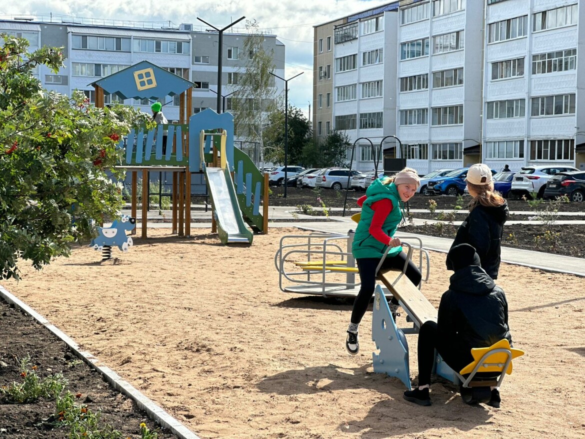 После капитального ремонта территория заметно преобразилась: уложили новое асфальтовое покрытие, сделали тротуары, а также установили игровые площадки и спортивный комплекс для юных бугульминцев.