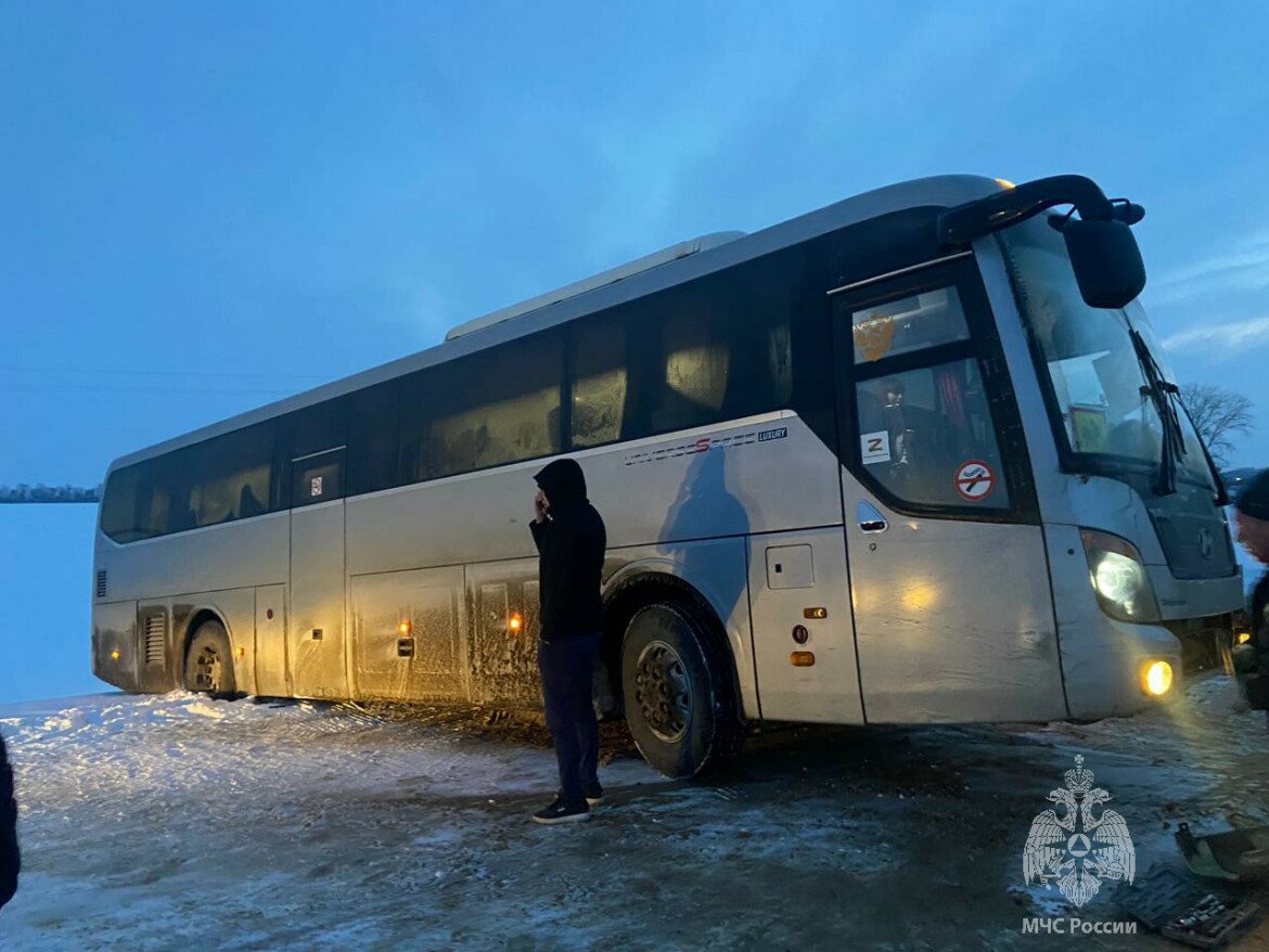 19 детей ехали из города Балаково Саратовской области, но водитель автобуса выбрал неправильный маршрут, попытался развернуться и транспорт застрял на обочине неподалеку от села Кайбицы.