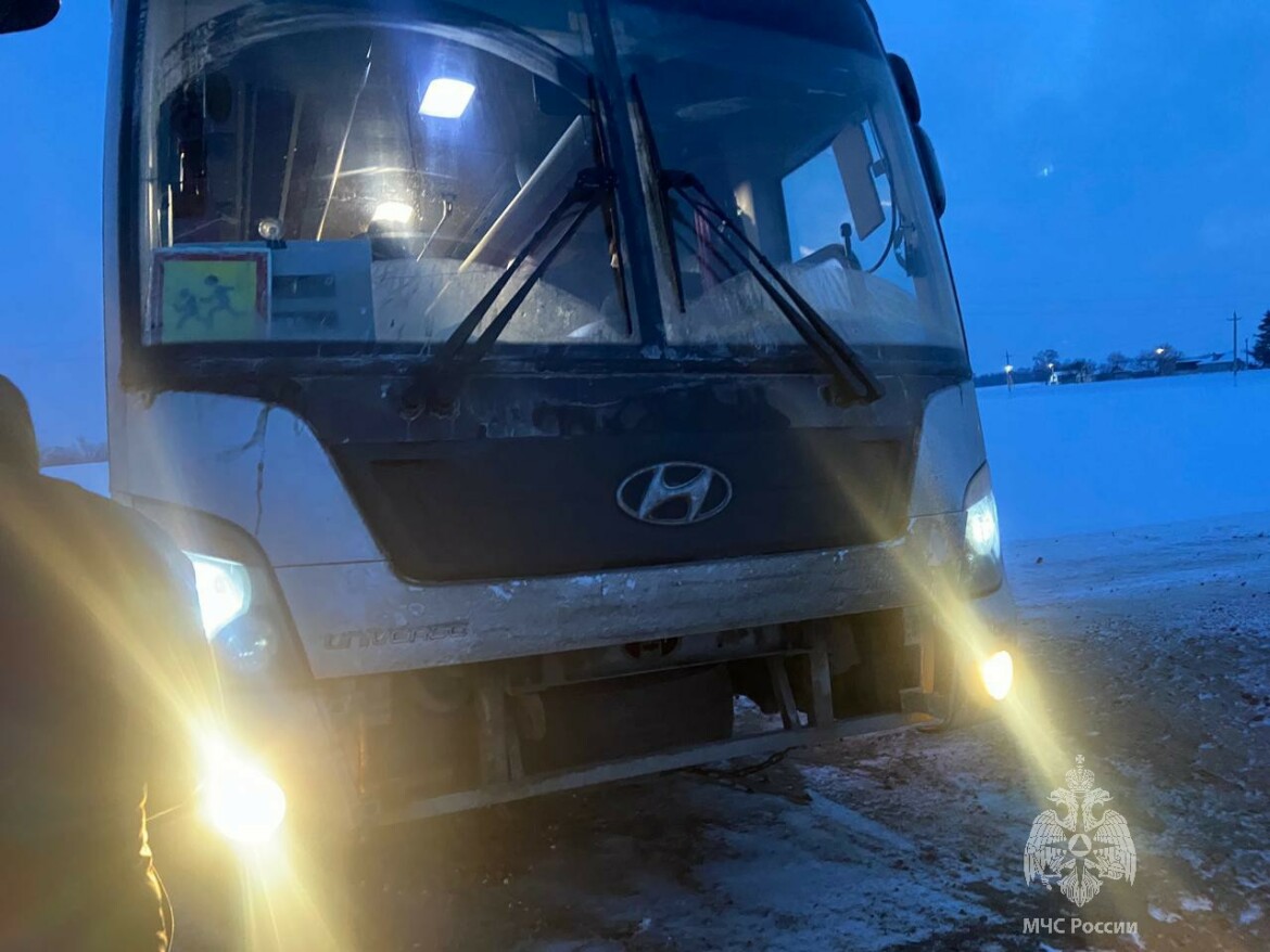 В Буинском районе РТ в снегу застрял автобус с детской хоккейной командой