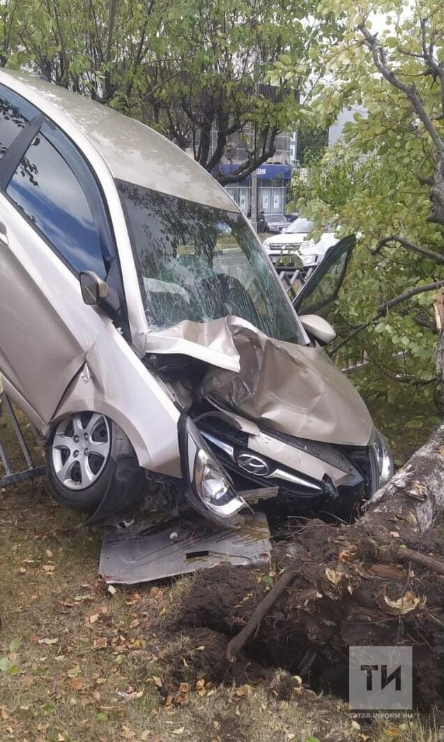В Челнах иномарка задела другое авто, врезалась в дерево и повисла на заборе
