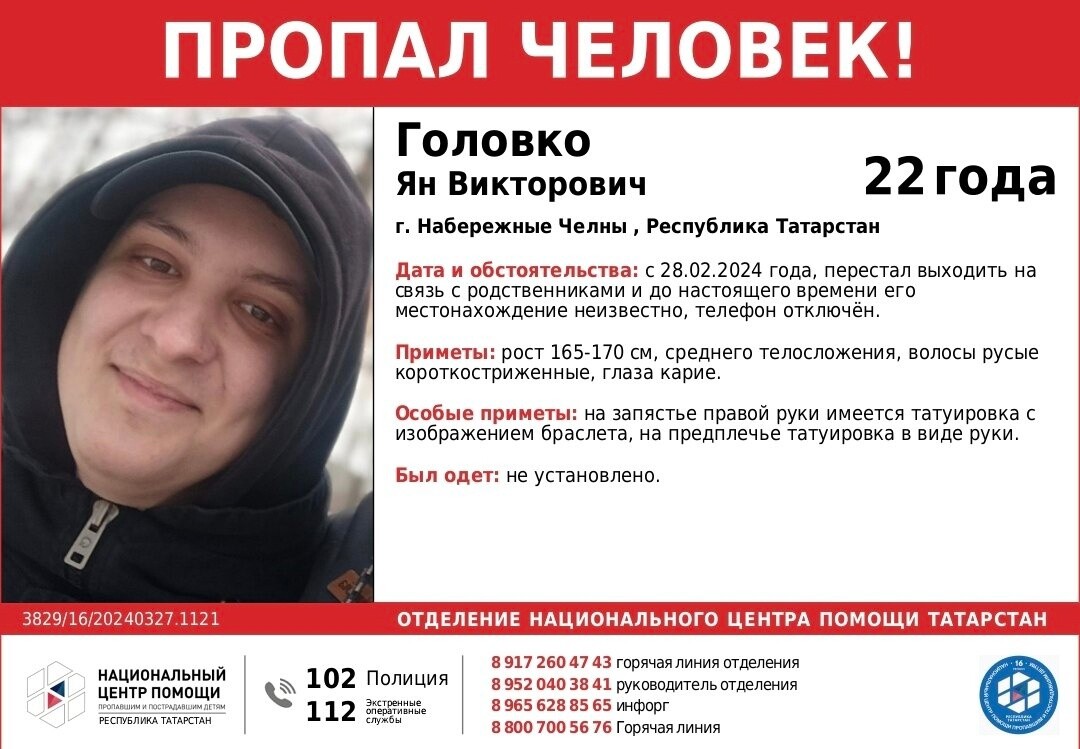 В Челнах ищут 22-летнего парня, пропавшего месяц назад