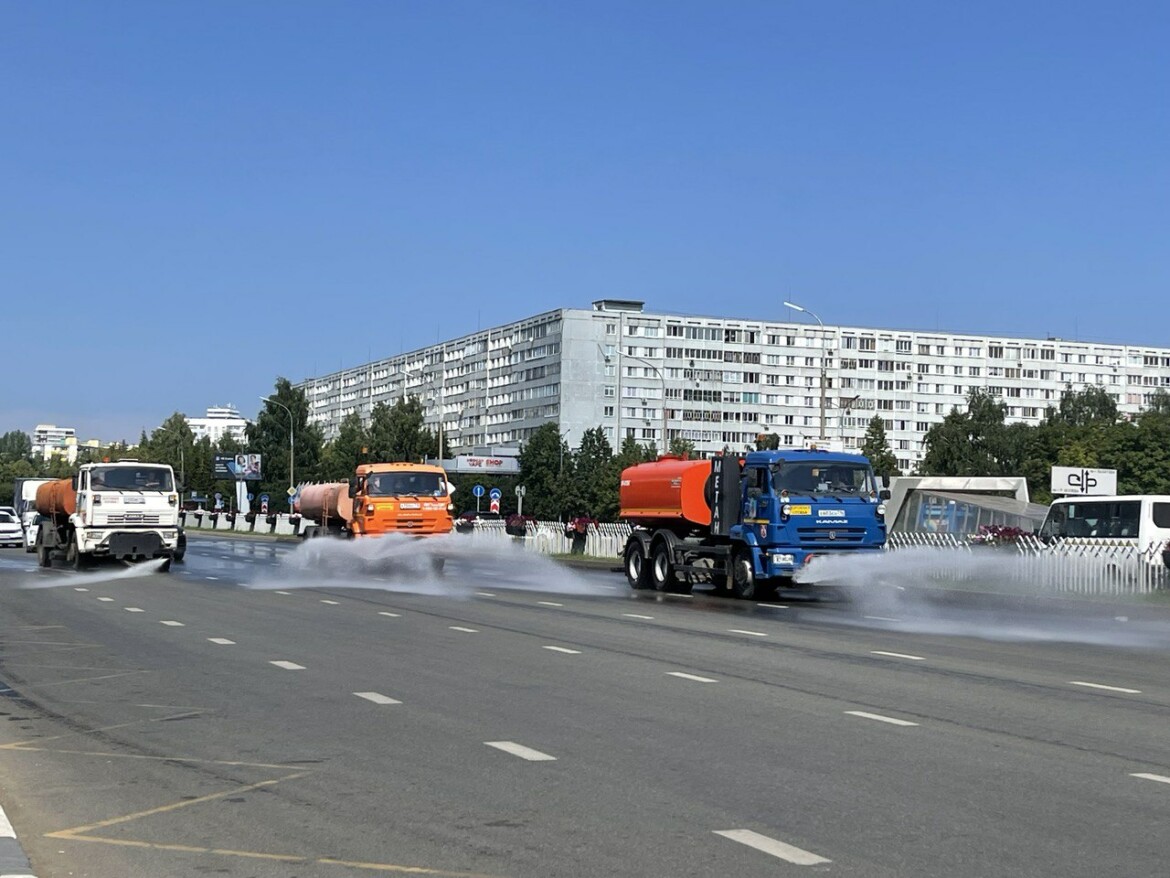 В Челнах из-за жаркой погоды усилен полив дорог и ночной полив растений