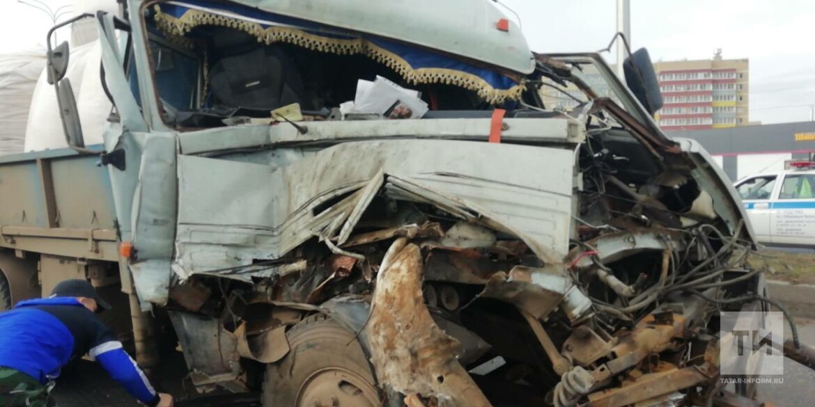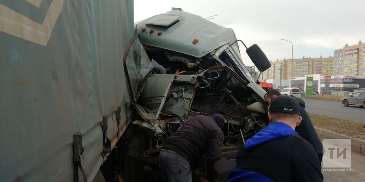 В Челнах «КАМАЗ» влетел в фуру, пытаясь не сбить перебегавшую дорогу девушку