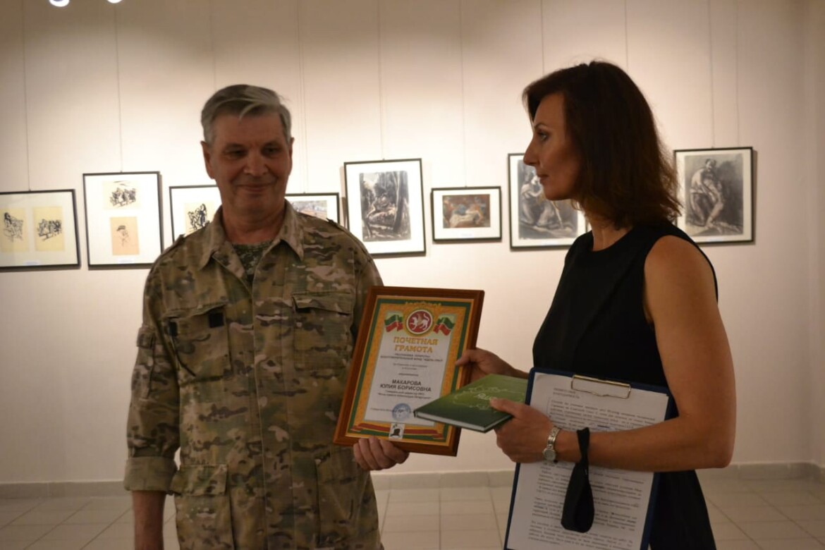 Выставка открылась благодаря Фонду памяти Александра Печерского (Москва). Ее генеральный директор Юлия Макарова на церемонии в Челнах рассказала, как у художника возник замысел посвятить цикл картин ужасам войны.