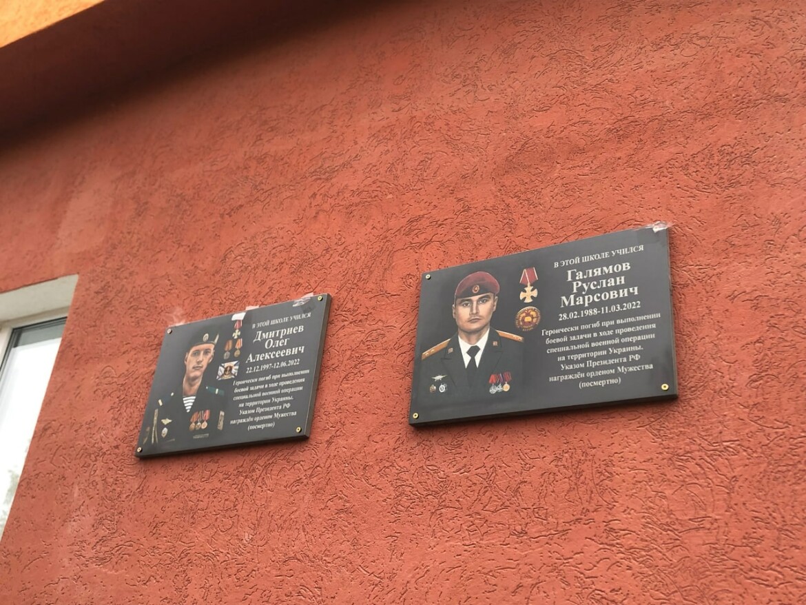 В Набережных Челнах состоялось открытие мемориальной доски выпускникам школы №11 — Руслану Галямову и Олегу Дмитириеву, погибшим на Украине в ходе специальной военной операции. Видео и фотографии опубликованы в Telegram-канале местной администрации.
