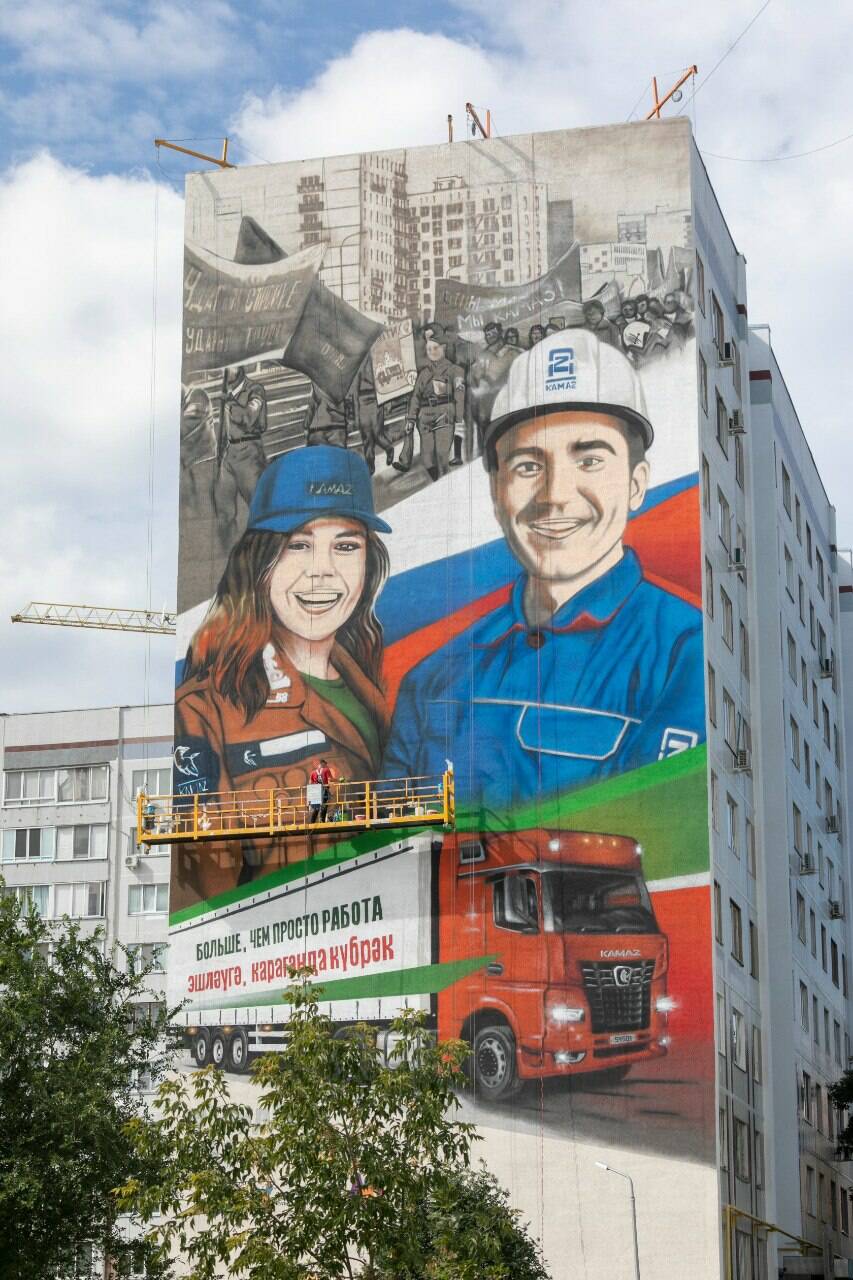В Челнах появился мурал, посвященный КАМАЗу и студенческим отрядам