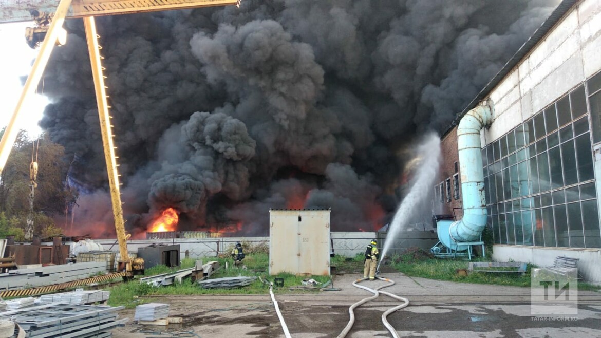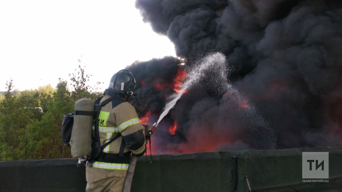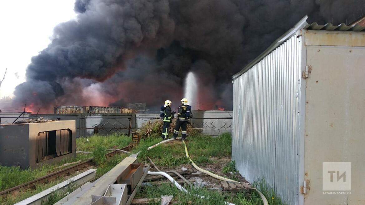 В Челнах пожарные с четырех утра тушат пылающие на территории склада резину и пластик