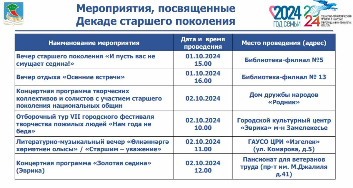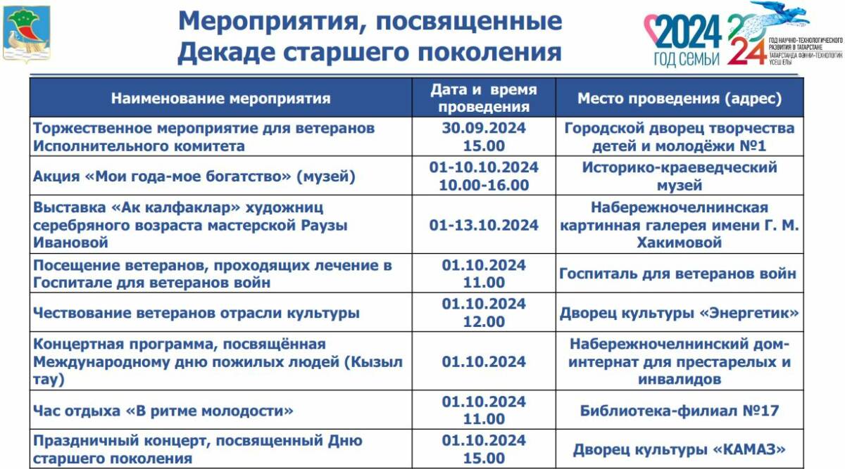 В Челнах проведут более 50 мероприятий к декаде старшего поколения