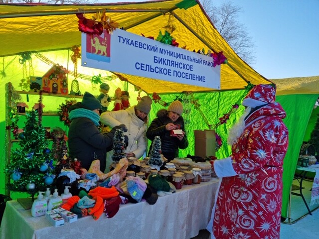 На территории стадиона «Строитель» накануне развернулась специализированная сельскохозяйственная ярмарка, в которой приняли участие сельские поселения Тукаевского района. Здесь в широком ассортименте продавцы предлагали речную рыбу, картофель, овощи, мясную и молочную продукцию, а также различную бакалею. Свои торговые точки фермеры оформили в новогодней тематике.