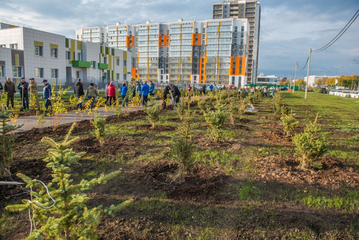 В Челнах у нового детсада, возведенного по нацпроекту, прошла масштабная посадка деревьев
