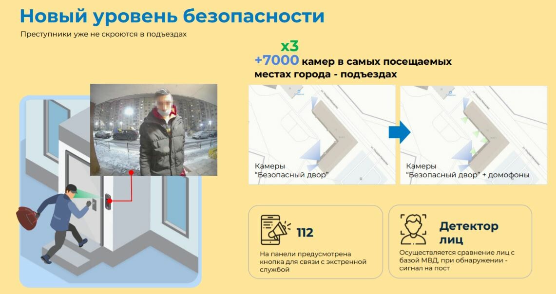 Спикер подчеркнул, что благодаря таким домофонам можно решить большое количество задач. Во-первых, пользователи смогут заходить в архив с видеокамер, есть связь с программой «Безопасный город», на панели предусмотрена кнопка для звонка экстренной службе, также осуществляется сравнение лиц с базой МВД.