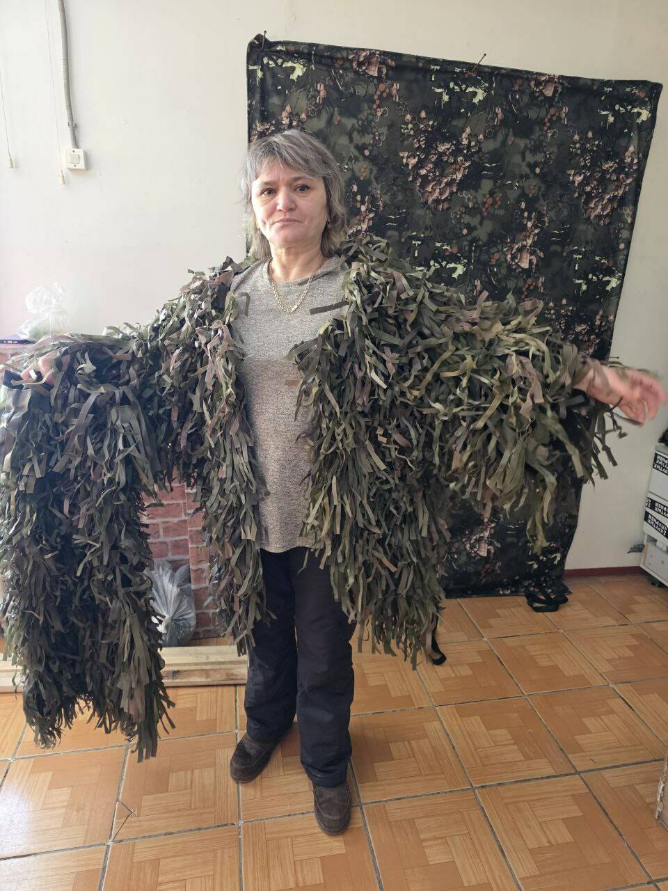 «Она перешила более 100 рубашек для нужд госпиталя, сейчас активно шьет маскировочные костюмы для бойцов СВО, участвует в изготовлении сетей, освоила технику нарезки ткани и специфические приемы», – отметила Анжела Закирова.