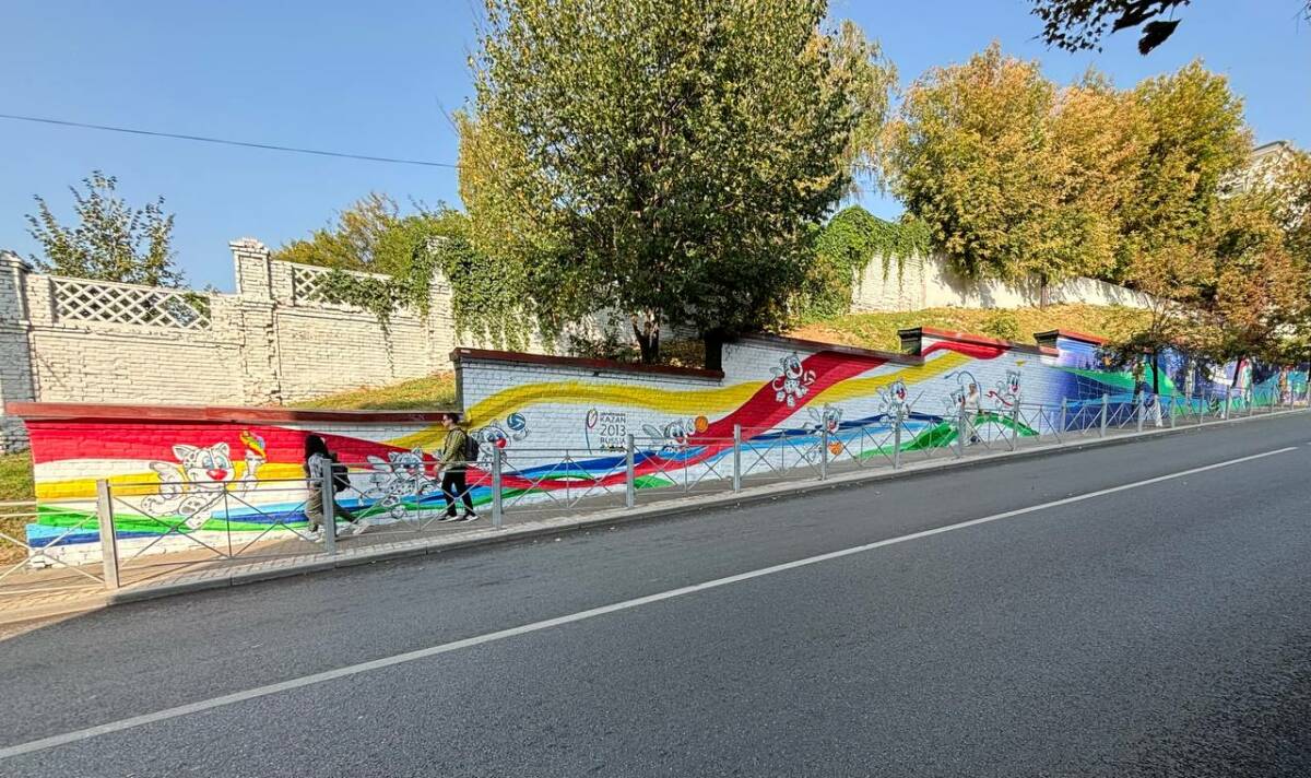 В центре столицы Татарстана, на улице Университетская, появилось новое граффити, посвященное трем спортивным событиям: Универсиаде 2013, первому мультиспортивному турниру «Игры будущего» и Спортивным играм стран БРИКС. Об этом сообщает пресс-служба администрации Вахитовского и Приволжского районов города.