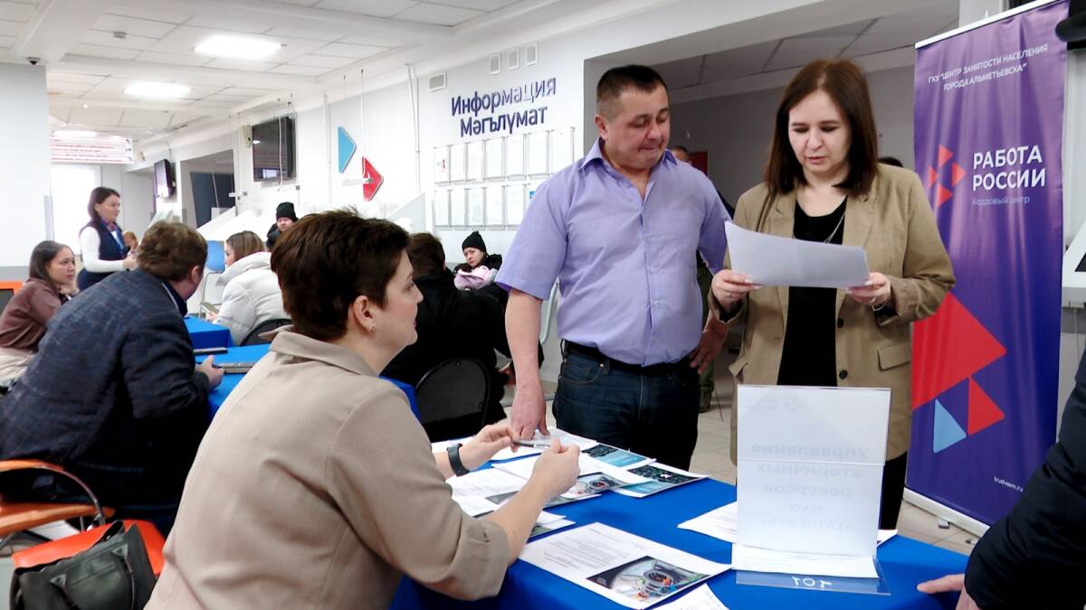 В Центре занятости Альметьевска состоялась ярмарка вакансий, где десятки соискателей получили возможность напрямую пообщаться с работодателями. Особое внимание уделили ветеранам боевых действий и их семьям – людям, которые проявили мужество в защите Родины и теперь стремятся найти достойную работу.