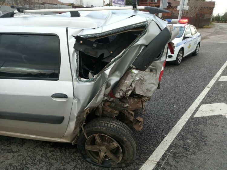 «Митцубиси Аутлендер» на большой скорости врезался в стоящую перед светофором «Ладу Ларгус», после чего отечественная легковушка влетела в «Ладу Калину».