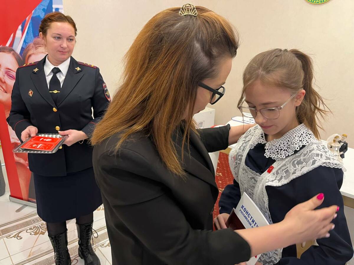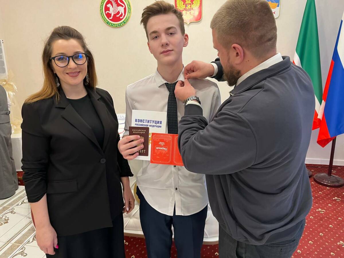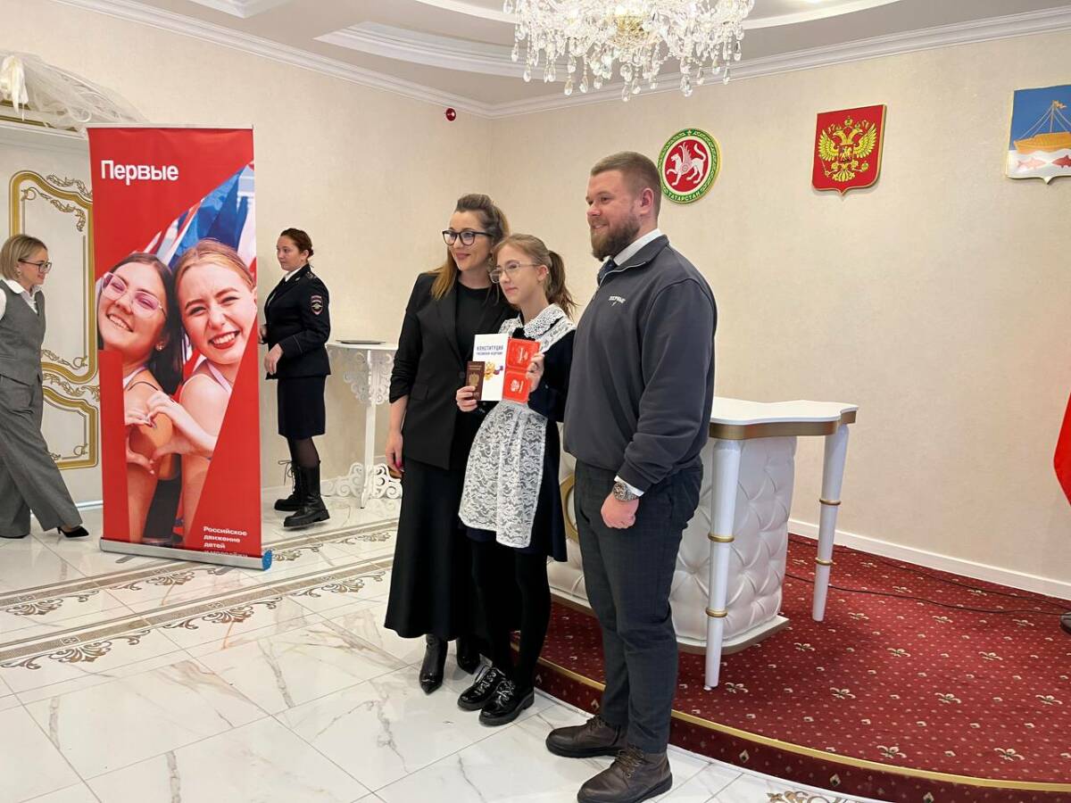 Церемония состоялась в Дворце бракосочетания, где собрались дети и взрослые, чтобы отметить значимый для страны праздник. С получением первого официального документа участников мероприятия поздравили управляющая делами исполкома Айгуль Амирова и руководитель проектов патриотического и спортивного направлений регионального отделения «Движения Первых» Александр Игошин.