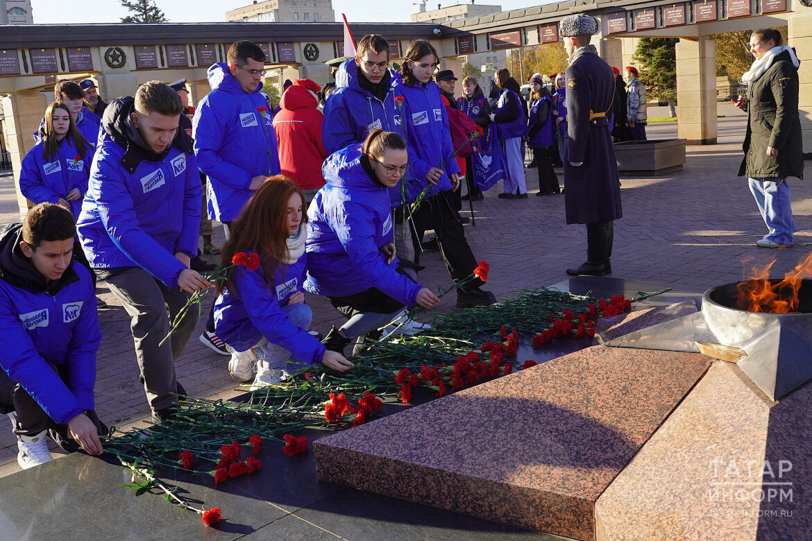 Молодежь Татарстана возложила цветы к Вечному огню в казанском парке Победы