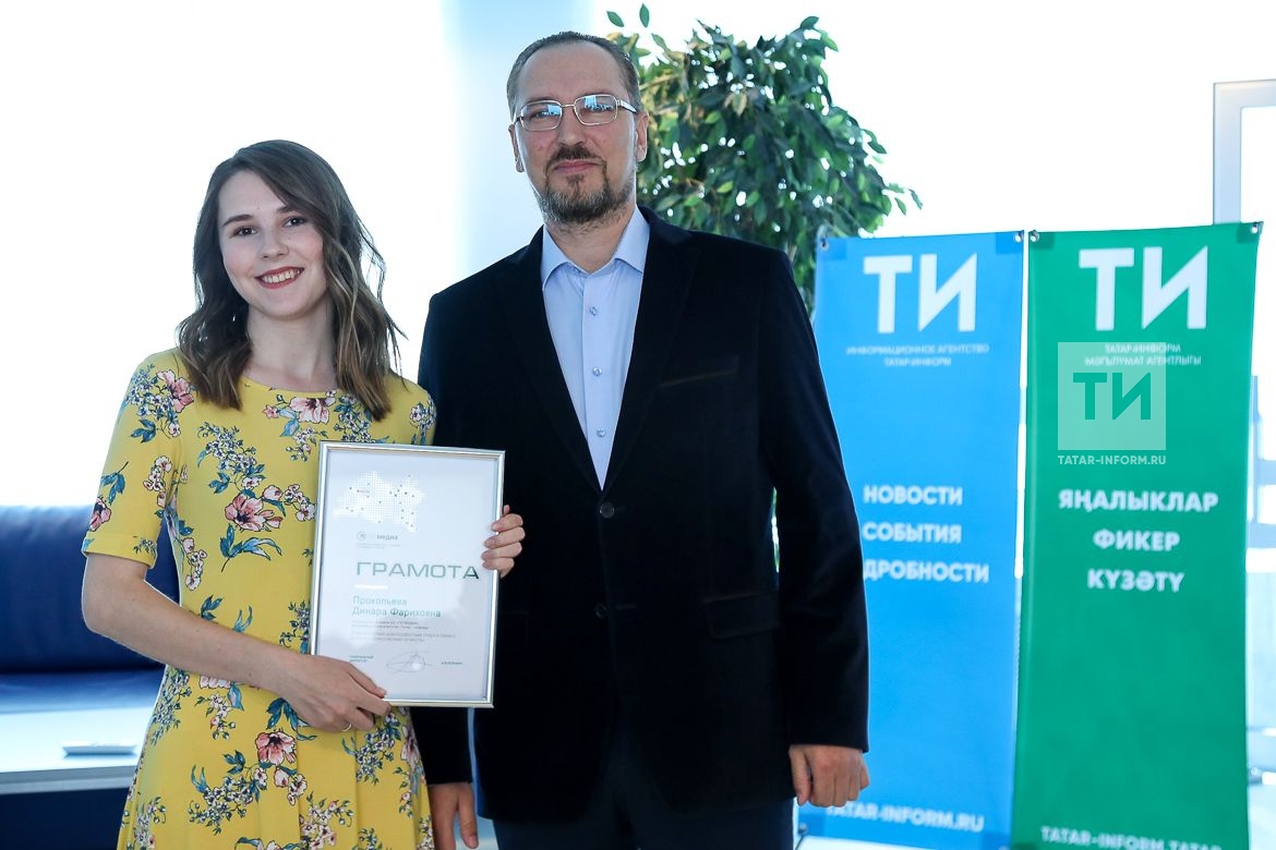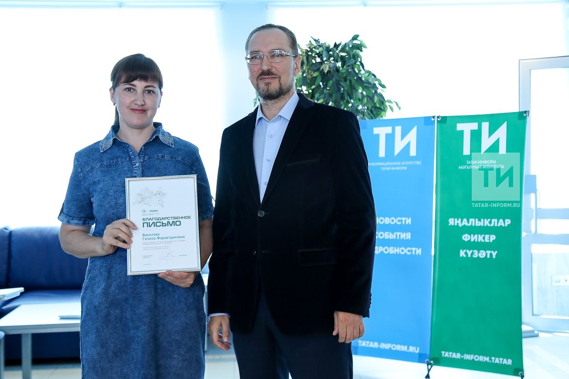 Глава «Татмедиа» вручил благодарственные письма журналистам Егору Никитину и Динаре Прокопьевой, корректору Марине Орловой, переводчикам Гелюзе Василовой и Раису Габдуллину, а также редактору татароязычной ленты «Татар-информ» Лейсан Хафизовой.