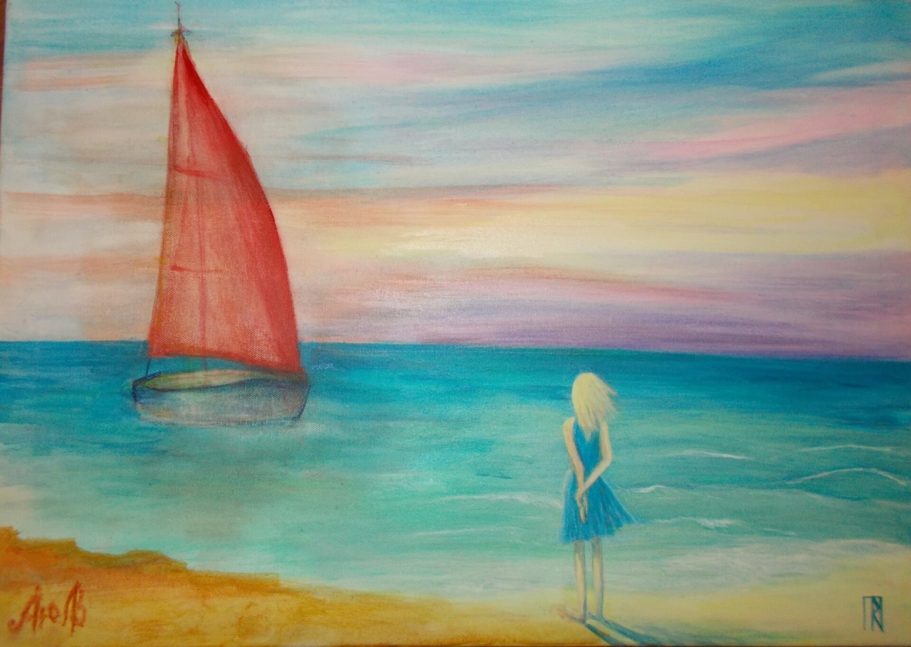 Эмоциональным центром выставки станет картина «Мечта» — современная интерпретация произведения Александра Грина «Алые паруса».