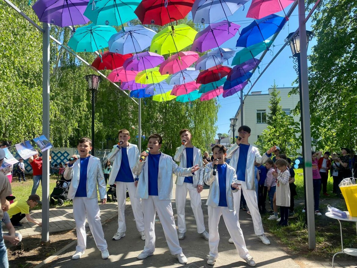 В Международный день защиты детей в Менделеевске состоялось открытие аллеи из 55 парящих зонтиков — разноцветная инсталляция расположена в Ленинском сквере.